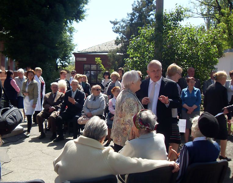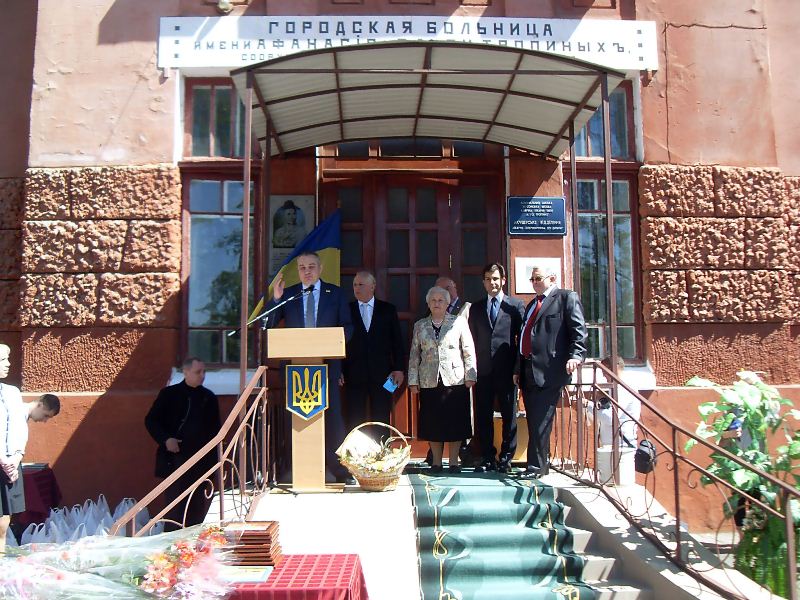 Разделить предпраздничную майскую встречу и поздравить коллектив с юбилеем приехал также известный в Херсоне промышленник, генеральный директор механического завода Станислав Исидорович Путилов. В своём выступлении и общении с сотрудниками он много благодарил медиков за их преданность своей работе, больнице и её богатой памяти. Умение быть верным – это поистине большая сила. Оно же – умение закрывать дверь во многие соблазны. Но даётся это не волей, а каким-то большим внутренним безволием, неспособностью к тому, чтобы переступить через себя. Станислав Исидорович обратил внимание на эти черты медицинских работников, и тот факт, что именно больница Тропиных всегда славилась хорошими, высокими специалистами. Он поздравил всех сотрудников с праздником Победы и юбилеем больницы, пожелал всем крепкого здоровья, единого духа в коллективе, чтобы никогда не терять того профессионализма и душевности, какие подразумевает понятие «Тропинка».