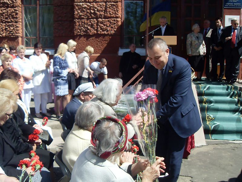 Со словами уважения, благодарности и поддержки обратился к коллективу народный депутат Украины Андрей Станиславович Путилов. Подчеркнув невыразимо важную роль ветеранов войны, которых присутствовало 22 человека, он призвал помнить об их святом подвиге, передавать молодому поколению правду об оккупационном времени, воспитывать во внуках гордость за свою страну, потому что патриотизм – это такое же качество, как совесть. Кроме добрых слов, от Андрея Путилова всем ветеранам войны были адресованы пакеты с подарками и просто море цветов! По-новому, по-свежему всплывало ощущение праздника, весны, солнца, и также остро колола тревога: как нещадно время, и как мы – каждый – в нём хрупки…