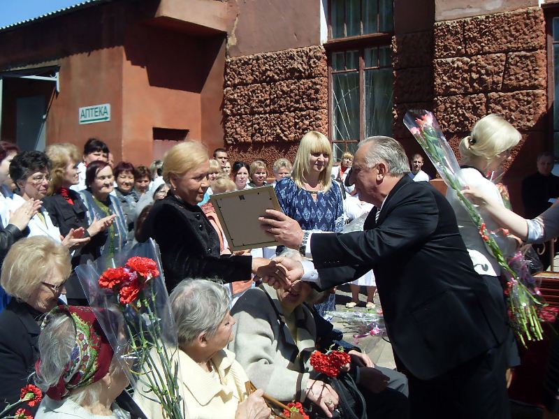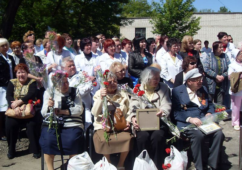 Этот день, его важность и запах раскрывались понемногу. Около входа в акушерский корпус больницы уже с 10 часов утра собирались приглашённые ветераны Великой Отечественной войны и ветераны труда – сотрудники прошлых лет, а также ныне действующие специалисты, проработавшие в больнице больше 35 лет – таких насчитывается свыше 50 человек. Это самые трогательные моменты – объятия… со своими коллегами, в своей родной больнице, где вместе пройдено тяжёлое и счастливое, где оставлена целая жизнь, которая, как оказывается потом, только и была настоящей. Ну, нет врача без больницы, а если вынужден – то больница всё равно живёт в нём: ожиданием весточки или вот таких встреч. Это как навестить родных людей, когда всё труднее справляться с тревогой о завтра – увидеться, мало говорить, смотреть так – как будто запоминать друг друга, не жалеть – желать… и надеяться, что всё так и будет.