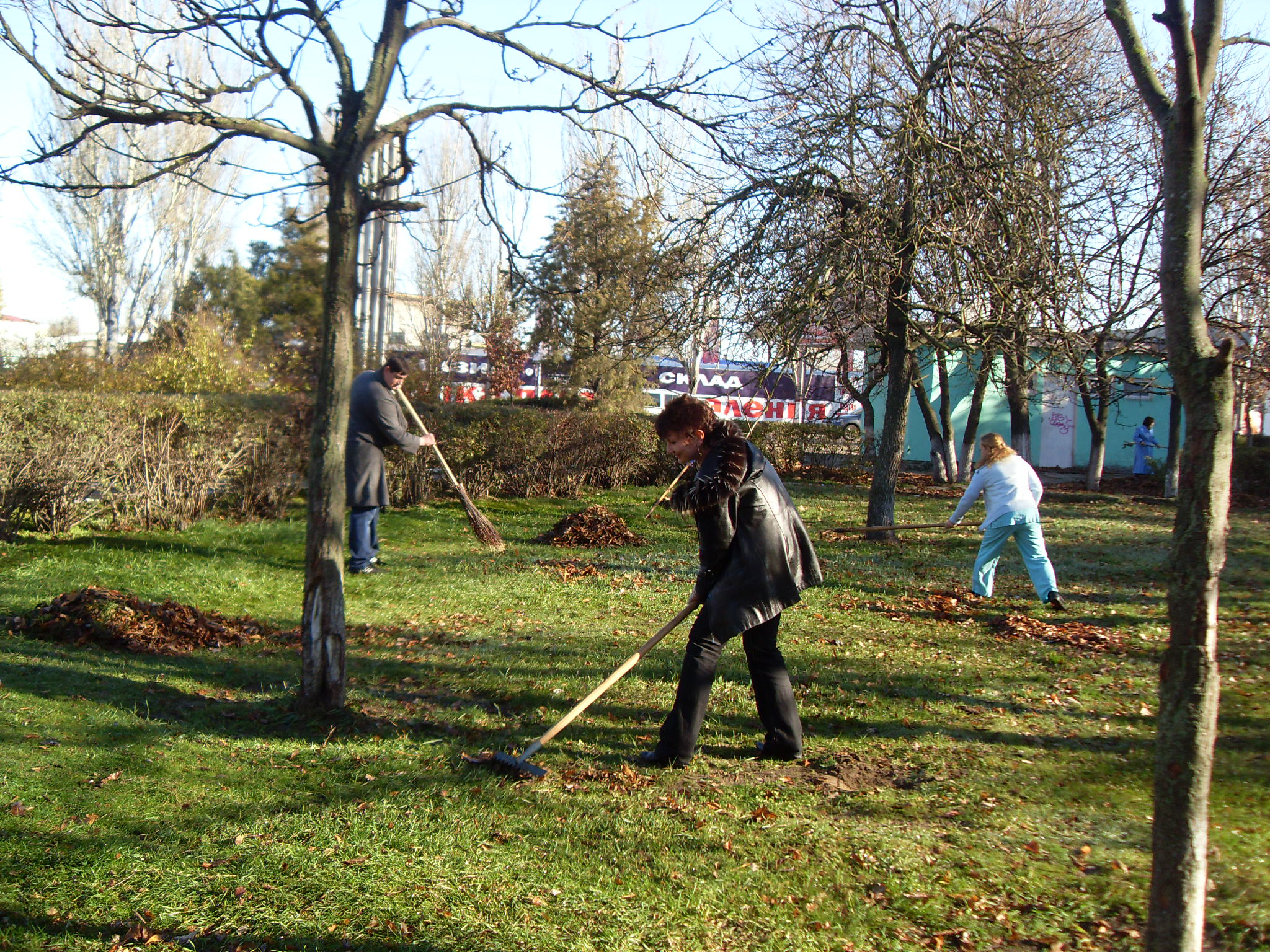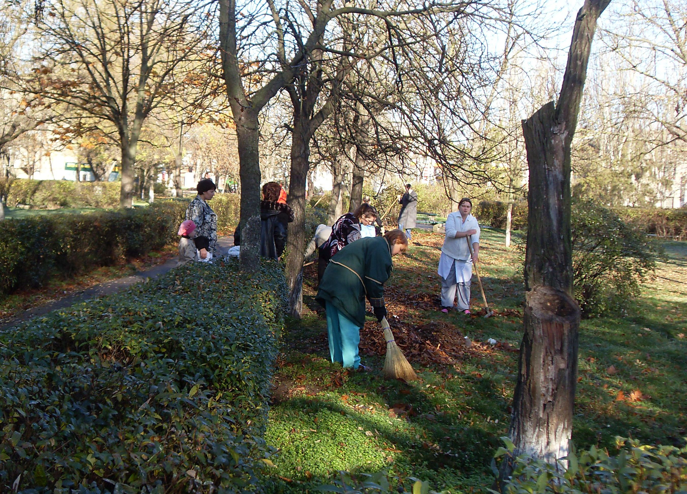 Собраны опавшие листья, мусор, сухие ветки, обработаны клумбы и цветники.