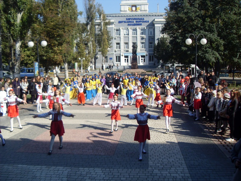 В завершение первой части конференции её участников приветствовала ученическая молодёжь Херсона. Перед входом в здание городского совета был организован, при поддержке управления образования городского совета, флешмоб – или массовая тематическая акция «Дети и безопасность дорожного движения». В ярком музыкально-танцевальном решении ребята рассказали о правилах дорожного движения и поведении пешеходов, а также поблагодарили врачей за их работу.
