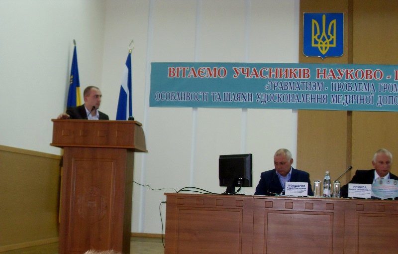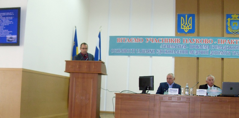 Первую часть научной программы конференции открыло выступление заведующего травматологическим пунктом Херсонской городской клинической больницы им. А. и О. Тропиных Евгения Миронова. Проанализировав ситуацию по травматизму в Херсоне, он более детально коснулся проблем, связанных с дорожно-транспортным травматизмом, подчеркнув важность оказания своевременной эффективной помощи на догоспитальном этапе, поскольку от этого фактора часто зависит жизнь и дальнейшая судьба пострадавшего.