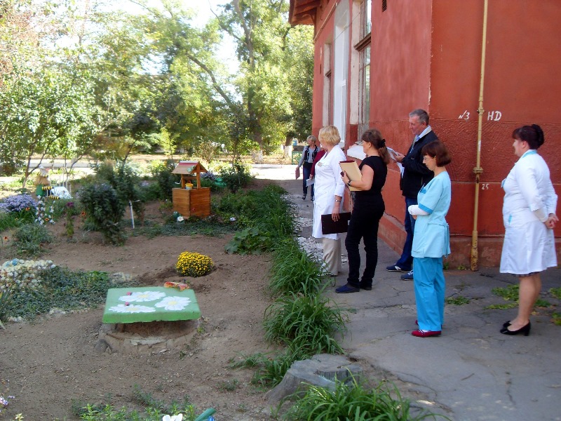 Начиная с мая месяца, в течение полугода в больнице проходит конкурсная эстафета по благоустройству, озеленению и украшению территории – искрит фантазия, спорят мнения, живёт и ищет выход внутренняя потребность улучшить мир вокруг себя. В ходе трёх туров сотрудниками были представлены десятки композиций, в решении которых использовались живые насаждения, декоративные украшения, необычные и многообразные варианты поделок из различных материалов, применялись дизайнерские подходы, зонирование территории, в зависимости от тематики – символичность, акцентированность, и даже созвучная с элементами стиля старого Херсона колоритность.