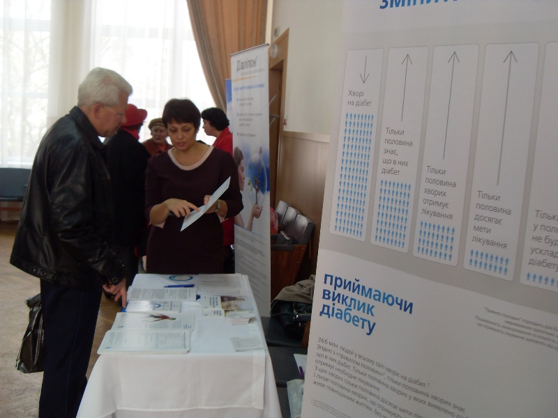 Конференция «День диабета» началась в холле исполкома, где для ознакомления посетителей была представлена выставка-продажа известных фирм-производителей медпрепаратов и средств самоконтроля. Все желающие могли бесплатно пройти экспресс-анализ уровня сахара в крови, измерить артериальное давление, получить консультации специалистов и ознакомиться с тематической литературой.