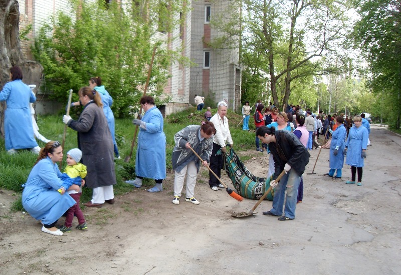 На уборку «Тропинка» вышла, как всегда, дружным большим коллективом – от представителей администрации и заведующих отделениями до младшего медицинского персонала, работников хозяйственной службы... Кто-то пришёл с детьми, - приподнятому настроению это только помогало, ощущалась какая-то живость в атмосфере, общность, желание очистить не только мир вокруг себя, но и, может быть, собственную жизнь, попробовать изменить её к лучшему.
