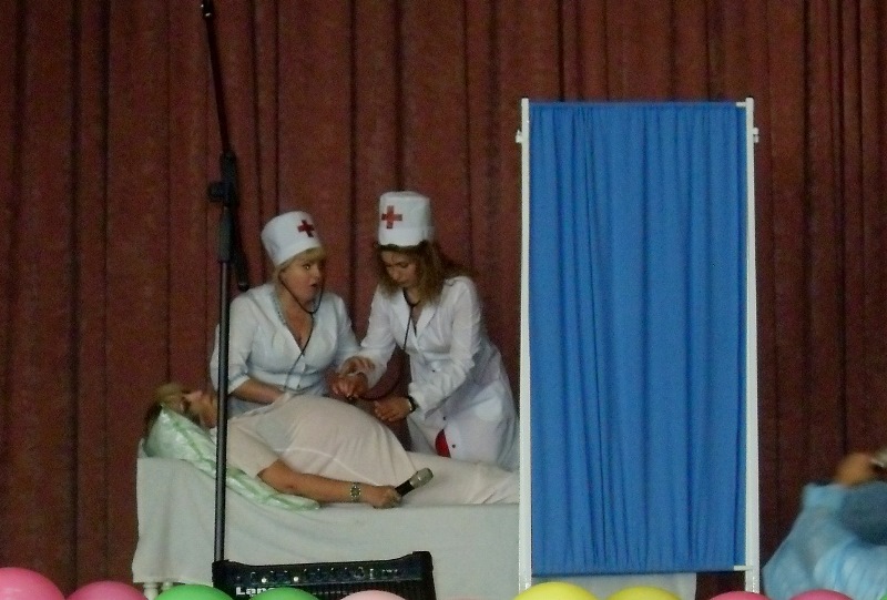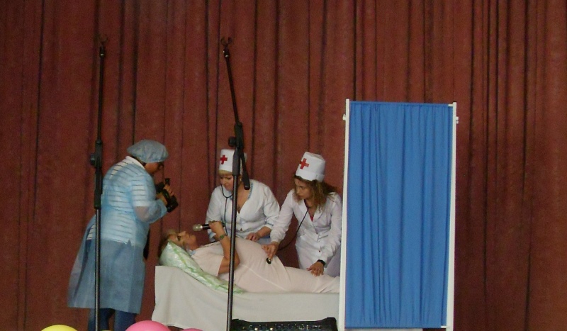 «Тропинку» на конкурсе представляли медсестра детского отделения Римма Бурдули, выступившая с вокальным номером, а также группа сотрудников амбулаторно-поликлинической службы, подготовившая театрализованную юмористическую сценку «На родах».
