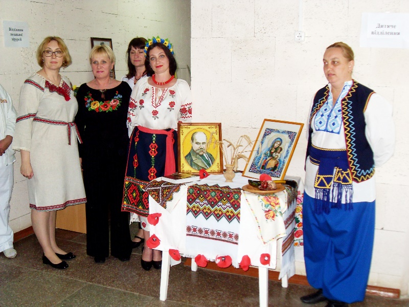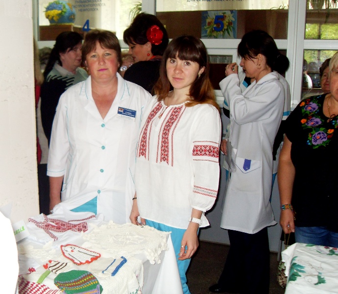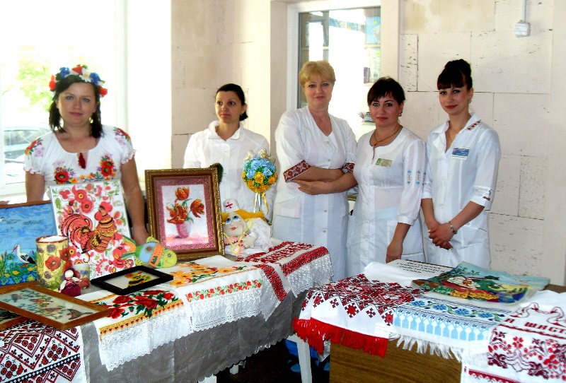 В 12 часов дня в холле поликлиники №1 открылась выставка декоративно-прикладного творчества работников больницы. Свои самобытные экспозиции – вышитые рушники, рубашки, салфетки, картины, миниатюры в национальном стиле – представили все структурные подразделения. Одновременно с выставкой проходил флешмоб вышиванок, во время которого наши медики в национальной одежде, презентуя свои работы, общались, делились впечатлениями и с удовольствием фотографировались.