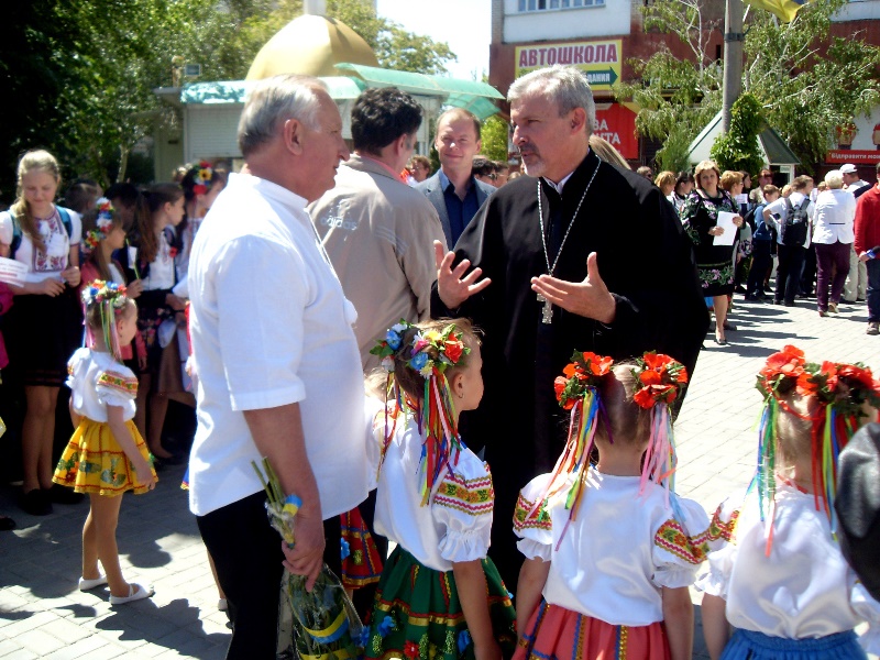Перед многочисленными гостями – взрослыми и детьми – с приветствиями и поздравлениями выступили глава Херсонского областного совета Андрей Путилов, при его поддержке этот праздник был организован; председатель Корабельного районного совета Наталья Чёрненькая; депутат городского совета, заместитель главы фракции «Солидарность», главный врач клинической больницы им. А. и О. Тропиных Леонид Ремыга, а также клирик храма Святой Троицы Олег Стецюк.