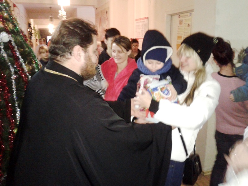 С поздравлениями и подарками в этом году ребят также посетил священник храма иконы «Знамение» Пресвятой Богородицы отец Павел.