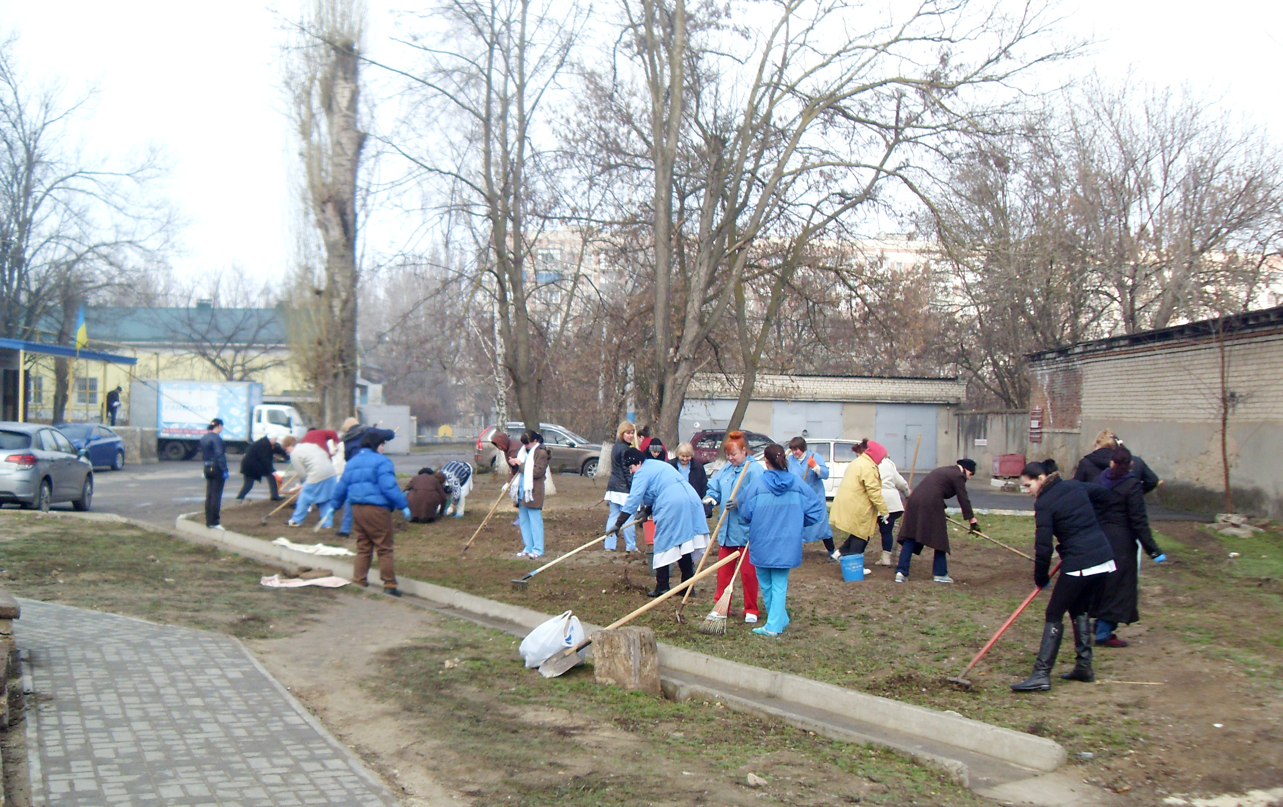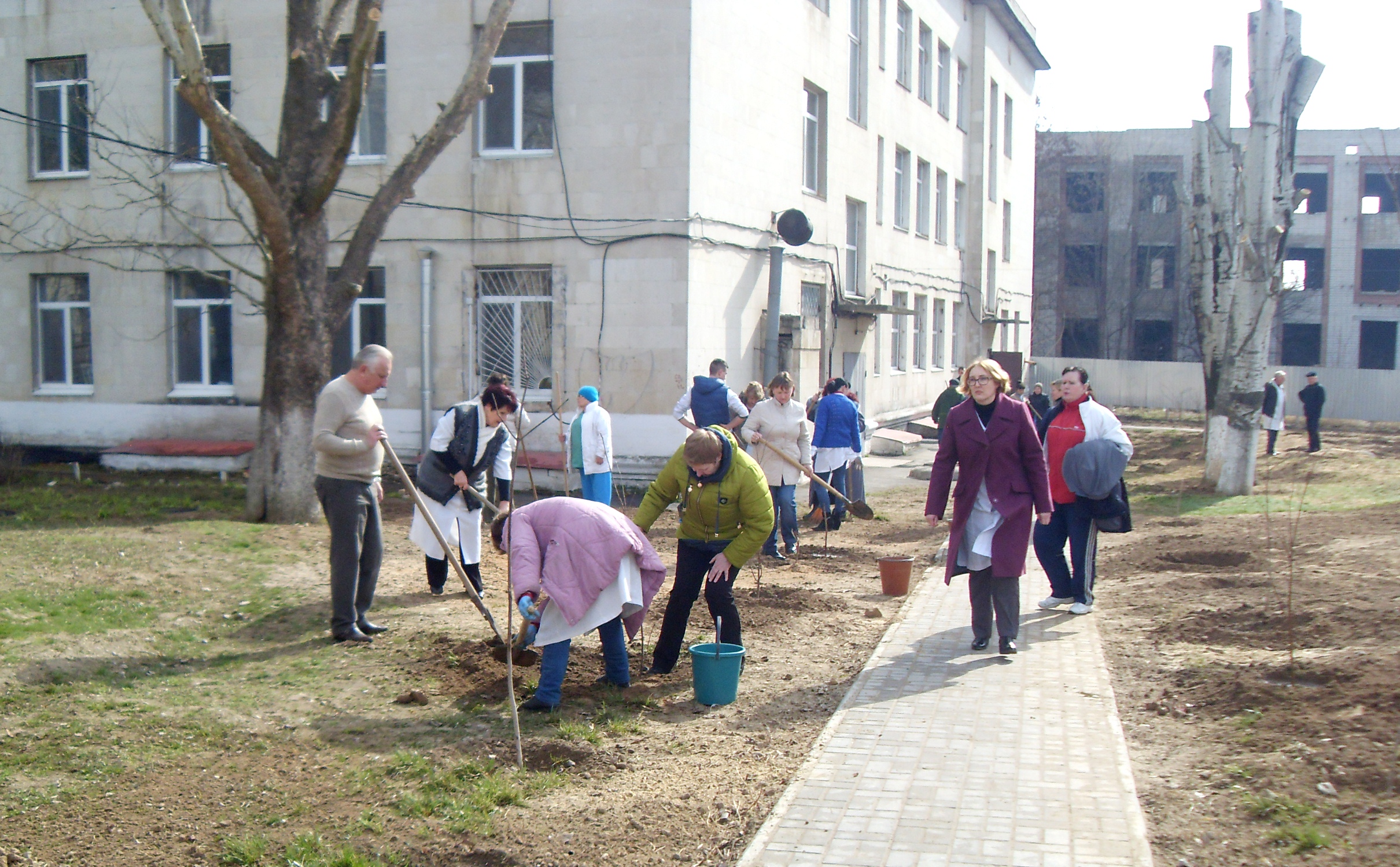Сегодня, в субботу, сотрудники всех подразделений больницы вышли на улицу, чтобы привести в порядок территорию, убрать оставшийся после зимы мусор, вскопать клумбы и другие участки, высадить корневые саженцы.