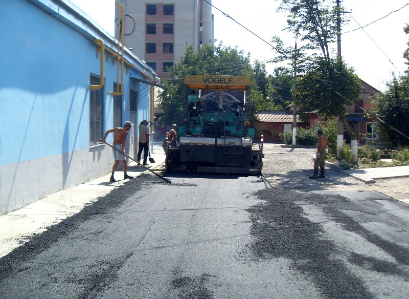 В центре двора больницы, после работ по расчистке территории, разравниванию и трамбовке щебня, начата укладка асфальтового покрытия.