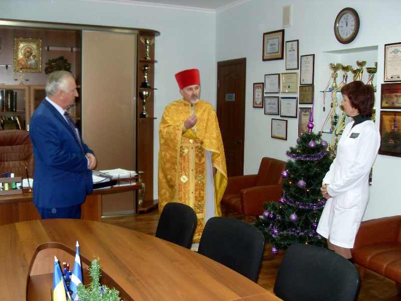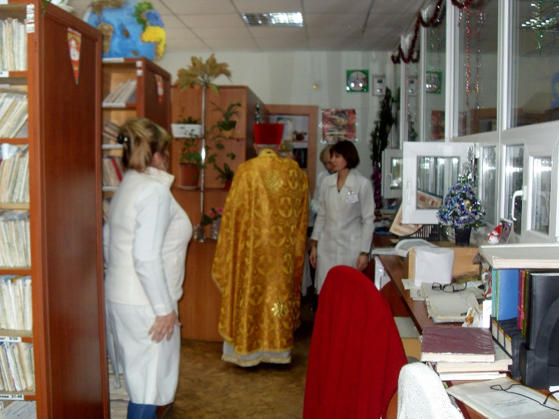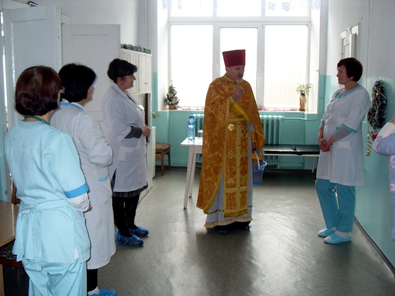 Сегодня, в День Крещения Господнего или Богоявления клирик больничного храма святой великомученицы Варвары, расположенного на территории клинической больницы им. А. и О. Тропиных, отец Олег окропил святой водой с молитвой о здравии сотрудников и болящих.