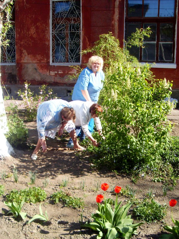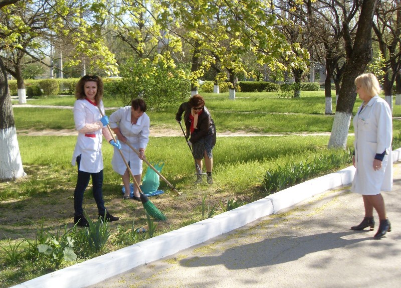 Многие работы по уборке и приведению в надлежащий вид территории больницы, а также прилегающих и закреплённых территорий были начаты сотрудниками загодя: ремонт и покраска ограждений и фасадов, побелка бордюров и деревьев, обрезка и чистка кустов, вывоз мусора и т.д. Поэтому сегодня – больше занимались очисткой участков от оставшегося мусора и травы, обработкой цветников, клумб, высадкой цветов.
