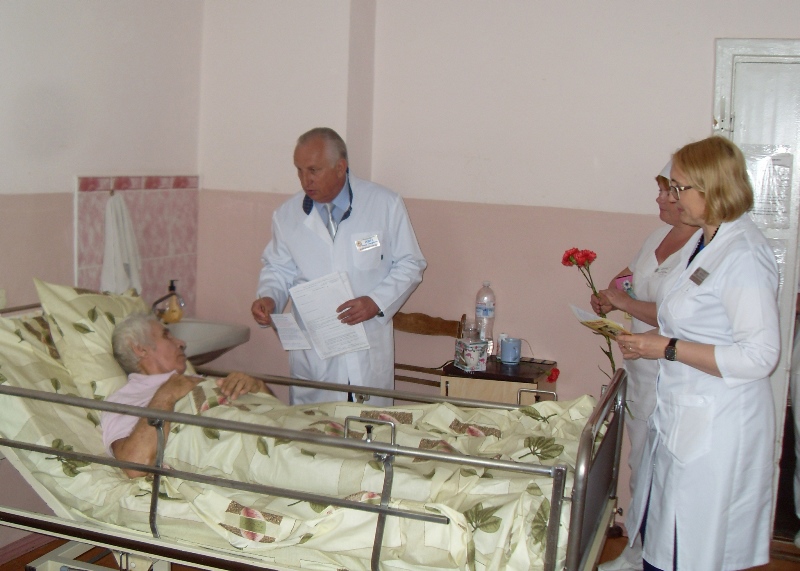 Вместе с тем на сегодняшний день в отделениях больницы на стационарном лечении находятся 11 человек, имеющих статус участника боевых действий и ветерана войны. По случаю праздника администрация больницы сочла нужным отметить вниманием этих пациентов. Сотрудники отделений вместе с руководством больницы поздравили их, пожелав здоровья, оптимизма, долгих лет жизни и поинтересовавшись ходом лечения каждого больного. Всем ветеранам были вручены поздравительные пакеты, открытки и цветы.