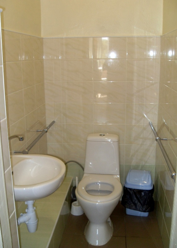 Все туалетные и душевые комнаты чистые и удобные, нет неприятного запаха. Ремонт сделан по современным стандартам, предусмотрены поручни, антискользящие коврики, кушетки, шкафы для хранения вещей, корзины для сбора белья, бельевые сушилки, горячая вода, моющие средства.