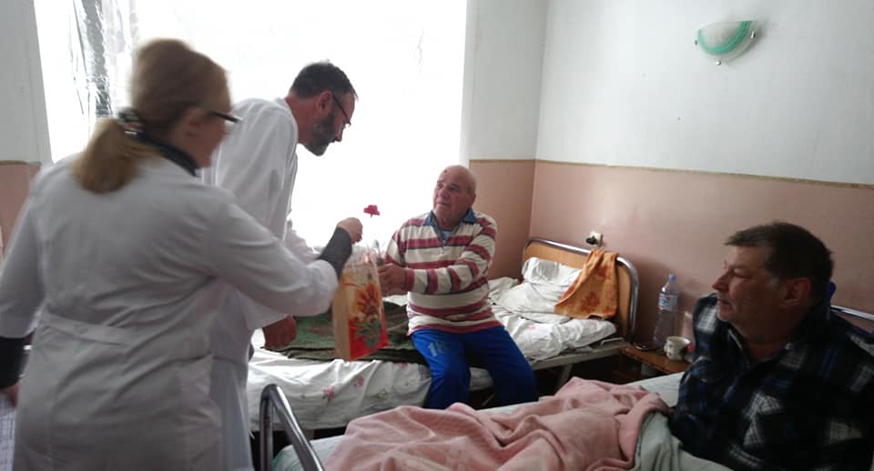 І, звичайно, в святкові дні представники адміністрації лікарні відвідали наших колег ветеранів, колишніх співробітників лікарні на дому, передавши вітання від колективу, а також подарунки, грошову допомогу та квіти.