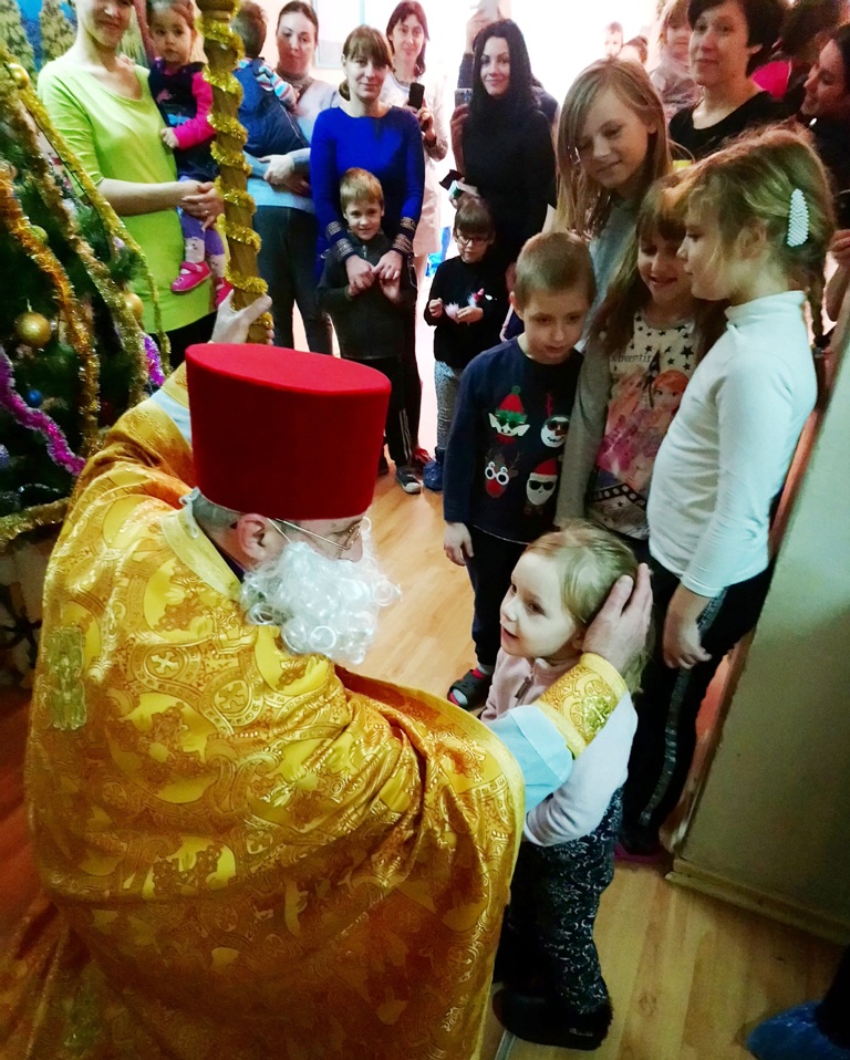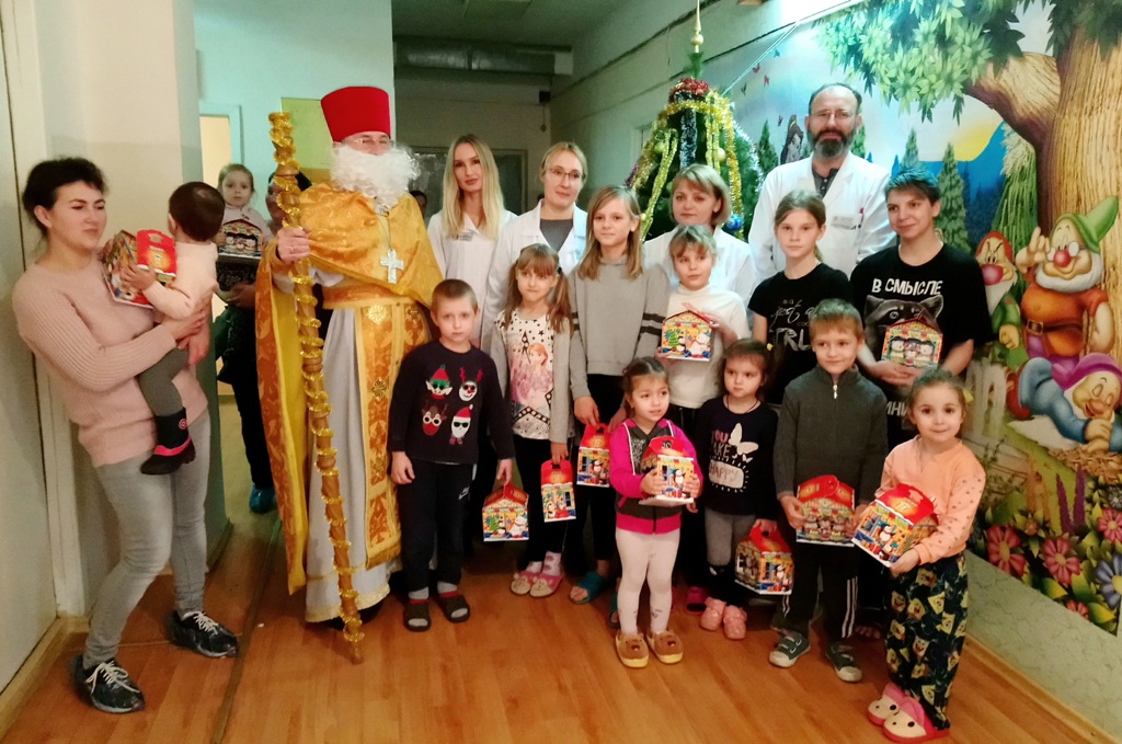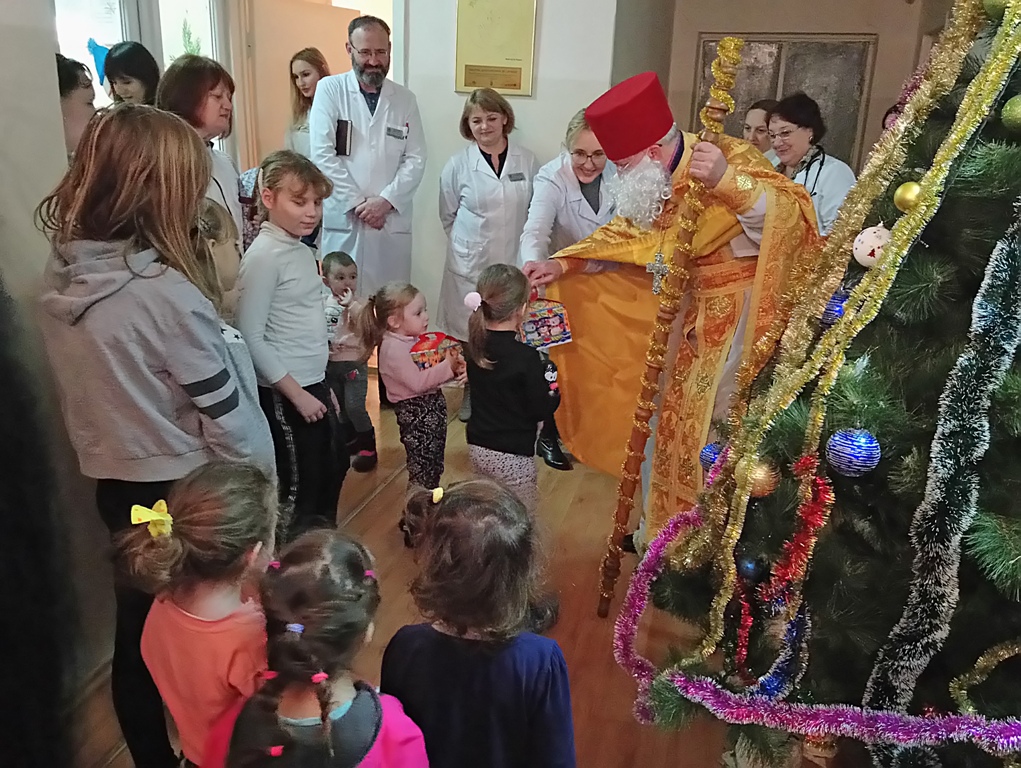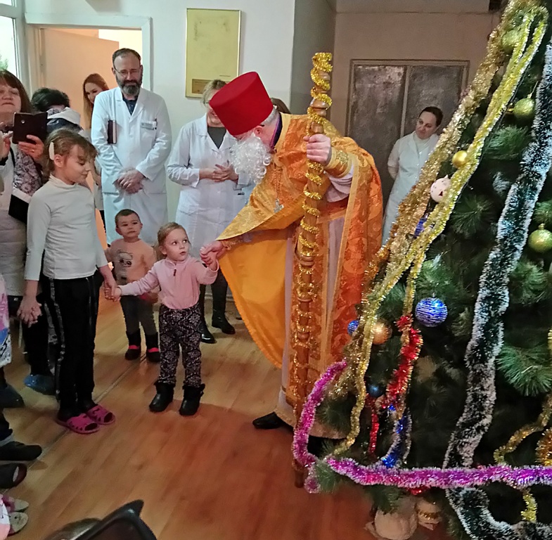 Головним сюрпризом цього дня була присутність у відділенні справжнього Святого Миколая. В образі сивобородого, мудрого й доброго мандрівника з'явився священик лікарняного храму Олег Стецюк, який звернувся до дітвори з побажаннями якнайшвидшого одужання, а ще добра і щастя в сім'ях, красивих і щирих посмішок, які роблять наше життя світлішим.