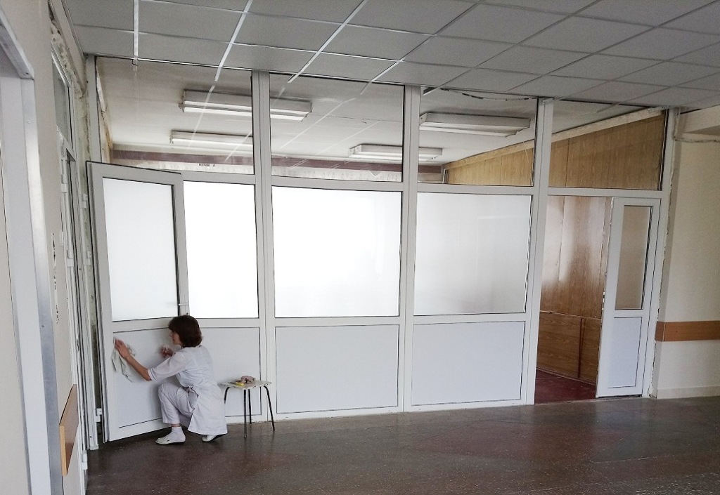 Одночасно проводиться ремонт холів на всіх поверхах стаціонарного корпусу, у відділеннях встановлюються сучасні пластикові вхідні двері, що дозволяють безперешкодно транспортувати пацієнтів, облаштовуються комфортні обідні зали, триває ремонт палат.