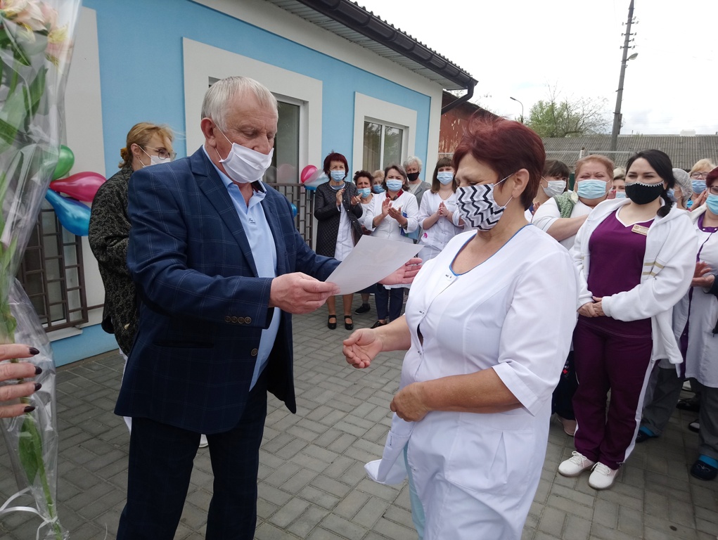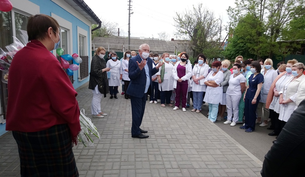 В лікарні Тропіних сьогодні вітали медичних сестер з професійним святом. Адміністрація запросила сестринський колектив зібратися у дворі лікарні, близько святково прикрашеного конференц-залу, щоб в нон-стоп режимі, практично без відриву від роботи, побачити один одного, привітати та зарядитися енергією доброти, взаємопідтримки та оптимізму.